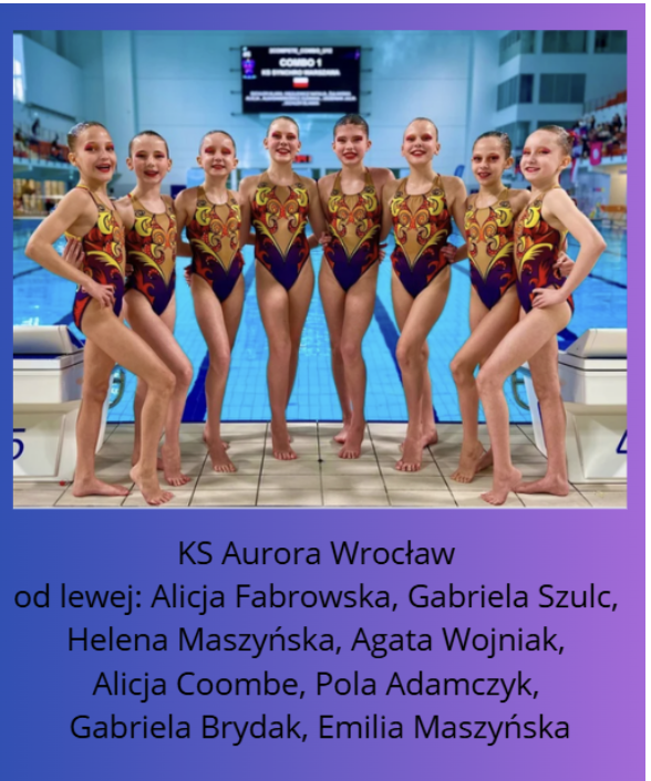 - 2 miejsce – COMBO – KS Aurora Wrocław – Adamczyk Pola, Brydak Gabriela, Coombe Alicja, Fabrowska Alicja, Maszyńska Emilia, Maszyńska Helena, Szulc Gabriela, Wojniak Agata
